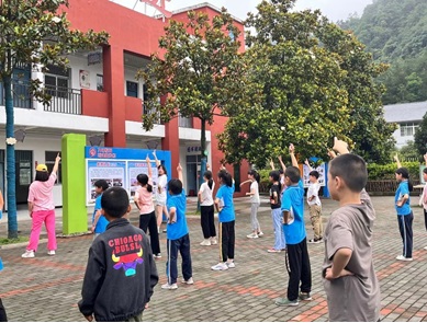 2023年7月3日早晨,志愿者们在茅塔乡中心小学与孩子们共同练舞