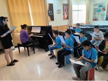 图为志愿者老师们在声乐课上教孩子们唱歌。(廖垣樯 摄)