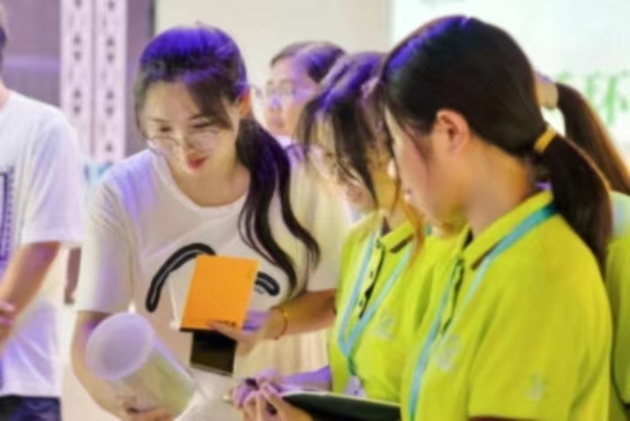 移步产业园展厅中,讲解员向实践队队员们揭晓了废弃电器电子产品的“内部秘密”,破旧的外壳下是各种金属与非金属零配件。讲解员告诉实践队队员这些零配件即将迎来它们的第二次“生命”,在被拆解后,它们会依据不同材料进行分类,送至流水线进行再生利用。在赋予这些废弃物全新形态时,不仅降低产业的碳排放量,还减轻了重金属污染,减少了固体废物产生,真正实现了绿色低碳循环处理。