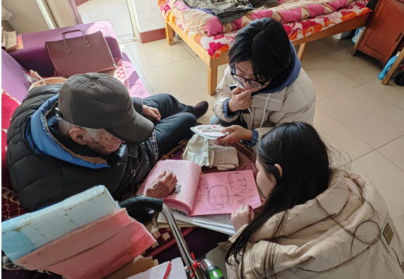 与此同时,实践团成员们还爱上了老人所画的作品,感受到了老人在艺术创作中的才华,观看作品,成员们体会到老人对细节的关注和对人物的独特观察力。成员们被老人的艺术才华所折服,纷纷表示对老人的作品深感钦佩,并希望能多与老人交流,进一步了解他的艺术创作背后的故事和心路历程。