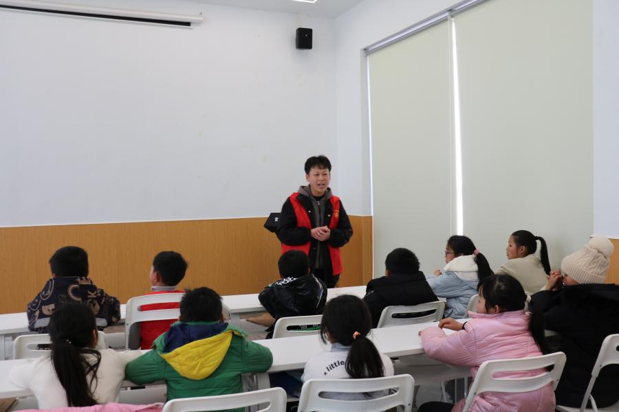 上午八点半,队伍与金银山少儿活动中心举办了开营仪式,金银山街道团工委书记张雪君老师出席并致欢迎辞,队伍所有队员、支教地学生及家长参加会议。会议伊始,张雪君老师发言表达了对参与活动的各位领导、老师和学生的欢迎,同时表示对“助力黔行”队伍三年来致力于服务金银山农村儿童的感谢。她希望在本次活动中,队伍和孩子们能共同收获成长,在这个冬天书写更美的青春诗篇。