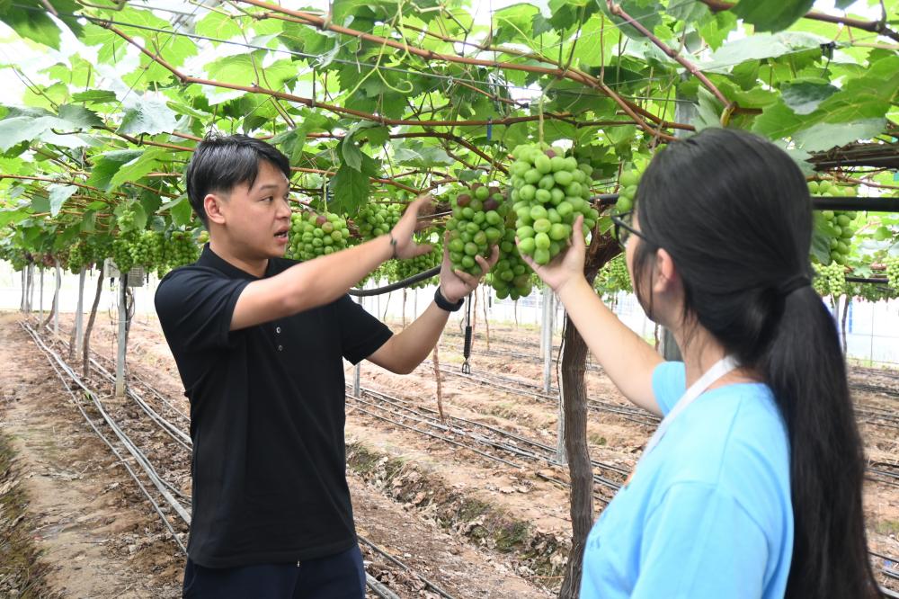王侠浃积极探索科技在农业中的应用,与福州公司合作,试验昼夜激光交替照射等创新技术,以加速葡萄成熟过程,提高产量和品质。王侠浃对实践团的成员表示,农场正逐步配备智能化设备,实现了远程监控和自动化管理,极大地提高了生产效率和精准度。此外,紫星农庄还拥有专门的试验田,用于新品种的试种和科研项目实施,搭建了信息交流和技术创新的平台。