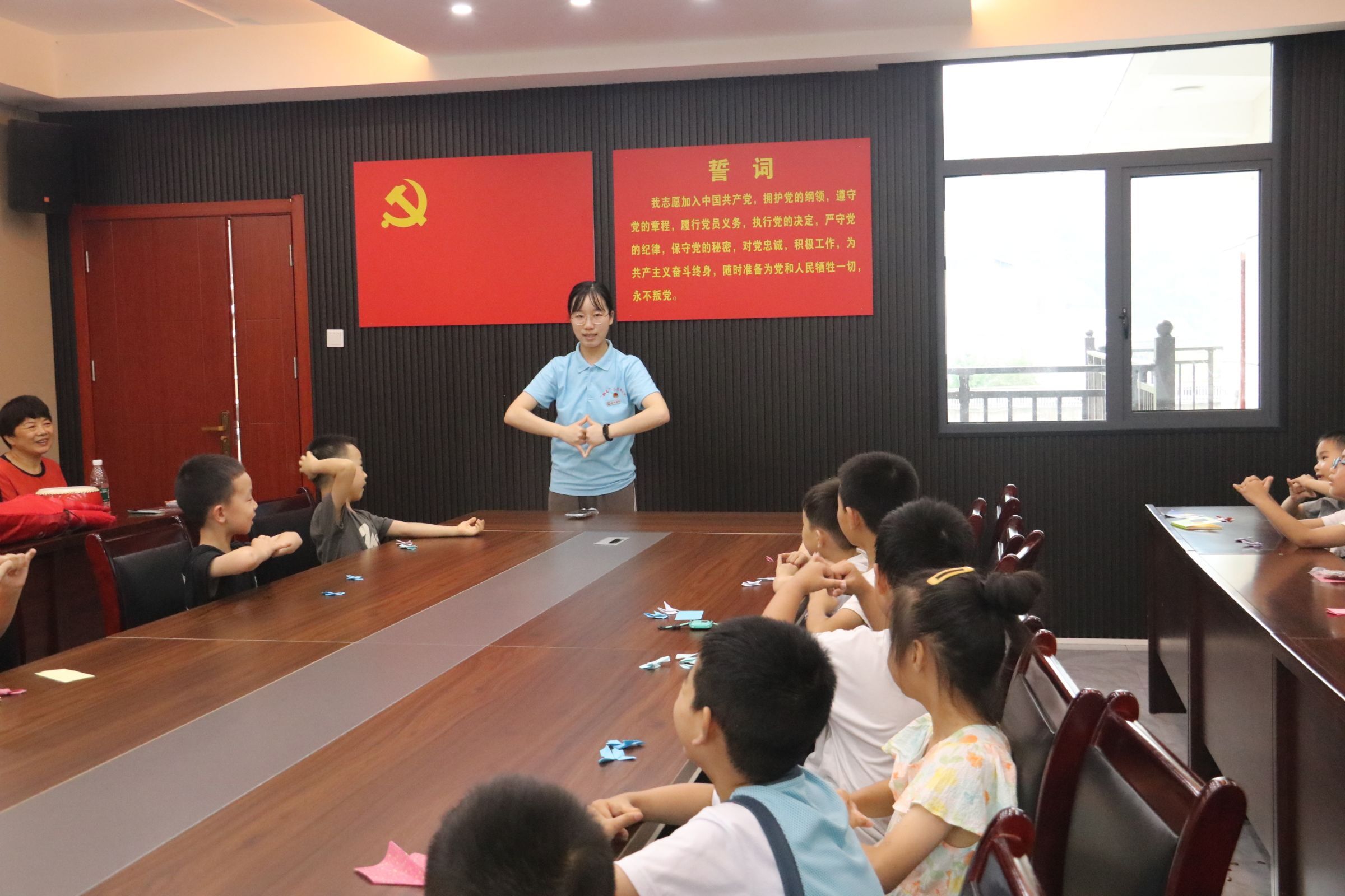 为深入学习贯彻习近平新时代中国特色社会主义文化思想和党的二十大精神,进一步推动中华优秀传统文化的创造性转化、创新性发展,传承与弘扬中华优秀传统文化,增强中小学生的文化认同和文化自信,2024年7月9日,怀化学院教育科学学院(少数民族预科教学部)“微爱”青年志愿者团队赴湖北省恩施土家族苗族自治州建始县朝阳社区,结合当地社区中小学生的实际需求,与建始县民政局联合开展了趣味折纸、古诗手势舞、书法等美育课程。