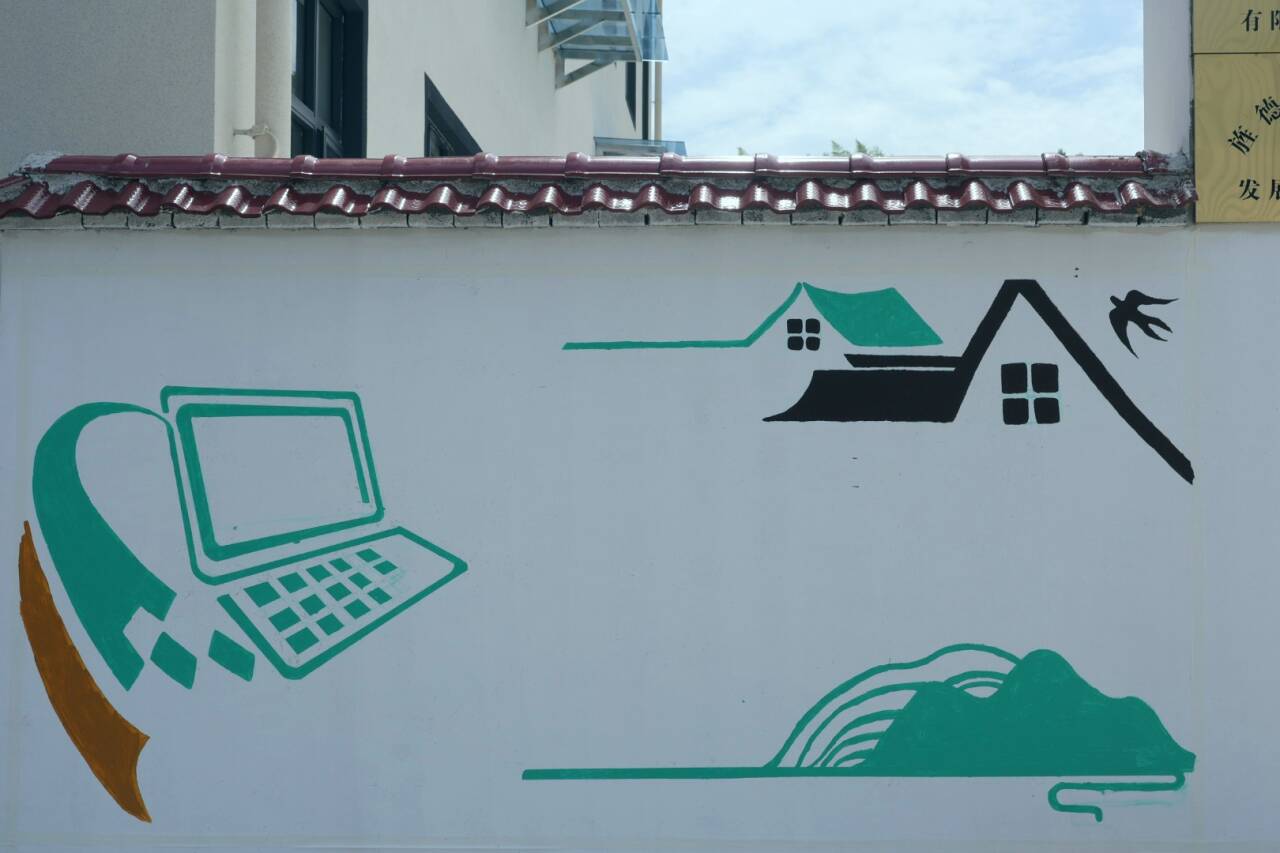 随着我们工作的逐渐深入发展,越来越多住在周边的村民都被我们吸引而来,组团遛弯的阿姨们在已经完成的作品墙面前驻足欣赏,并向志愿者们询问画面里的具体内容,了解到是和他们的生活息息相关后,便露出来欣慰的笑容,和团队成员表达了自己生活在这里的幸福感。