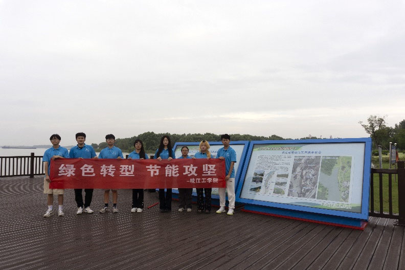 随后土木工程学院实践团队参观当地的景色,这里如今游人成群,群众在此游玩赏景感受大自然的美好。公园中有爷爷带着自己的老伴在游览观光道上锻炼身体,母亲推着婴儿车在观光台,父亲带着儿子游玩,远处还有行人牵引宠物狗,每一幅场景都体现着人与自然的和谐相处。站在观景台向远处眺望水天一色,长江之水缓缓流淌,一只白鹭从远处飞来落在薛家洼。