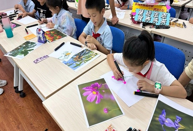 童绘绿意,梦想起航。最令人动容的莫过于“童绘生态”环节。由小队成员提供若干植物图片,孩子们拿起画笔,在洁白的画纸上自由挥洒,既可以按照所提供的植物照片进行绘画,也可以按照自己意愿画出自己心目中最喜爱的植物图片。除此之外,小队成员们还提供了咕卡盘,小朋友也可以把想画的植物画在咕卡盘上,既增加了趣味性也可给小朋友们留作纪念。孩子们的每一幅作品都充满了童真与创意,也寄托了他们对美丽植物的珍惜和喜爱。