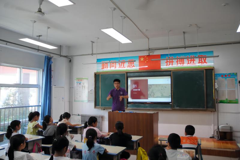 为传承和发扬中华民族优秀传统文化,使古老的艺术瑰宝在新时代绽放光彩,7月18日,山东理工大学“爱之传承”暑期社会实践团在德州市武城县四女寺镇明德小学,为孩子们开展了一节《中国历代绘画大系——花鸟》美育课程,主讲人张光显从花鸟画的萌发、独立、写实、表意四个方面,向大家介绍其发展历程,鉴赏、品读各阶段代表名家作品及其人文内涵。