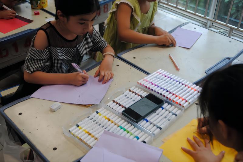 课程尾声,主讲人张光显还带领孩子们拿起画笔,画心中的花鸟图。他先示范基本的构图和线条技巧,孩子们全神贯注地倾听。随后,孩子们大胆创作,用色彩和线条描绘自己心中的花鸟世界。这一过程不仅培养了孩子们的动手能力和想象力,更让他们在实践中深入理解花鸟画的魅力。通过亲手绘制,孩子们与传统文化有了更亲密的接触,也增强了对美的感知和表达能力。
