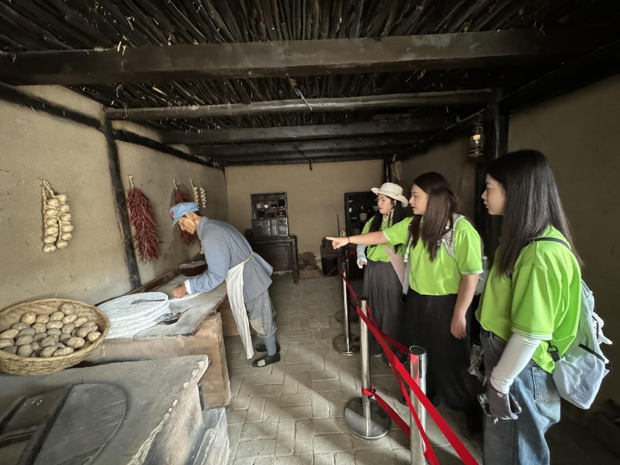 厨房内,一位男子正在一台老式炉灶前忙碌,炉火映照着他专注的脸庞,仿佛在重演着当年红军战士自给自足、艰苦奋斗的场景。简单却充满了生活的气息,让人不禁想象起红军战士们在这片土地上留下的汗水与足迹。实践队员们仔细观察着男子的每一个动作,从中汲取那份坚韧不拔、自强不息的革命精神。