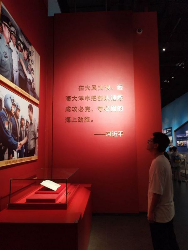 在展览过程中,队员们不仅了解到海军的发展背景和战略意义,同时也感受到了一种深沉的历史责任感。通过观看一系列反映海军英雄事迹的展品,实践队员张令意感慨道:“身为新时代的青年,我们更应该铭记历史,努力学习,将来为国家的海洋强国梦贡献自己的力量。”