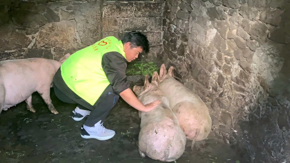 图为促进团成员为养殖户们发放养殖技术手册和消毒粉等物资 龙飘 供图促进团成员还前往村民家中去帮他检查他家猪不吃食的情况。促进团成员仔细观察猪的状态,检查环境和饲料,凭借专业知识为村民分析原因并提供有效解决建议。