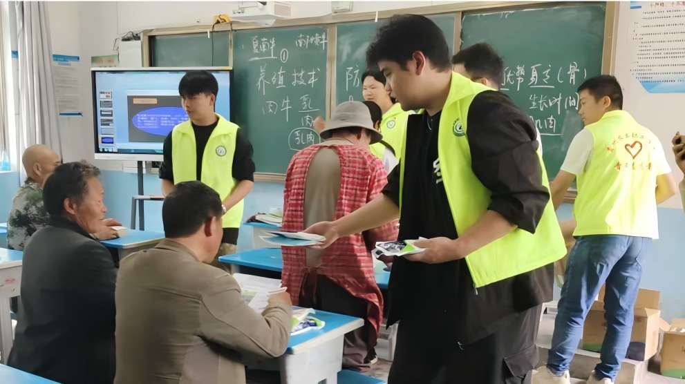 图为培训结束后促进团成员与养殖户们的合影“知行合一青春笃行”乡村振兴促进团的指导老师薛森武围绕肉牛养殖和疫病防治两大主题,展开了深入细致且通俗易懂的讲解。在肉牛养殖方面,薛老师就品种选育、饲养管理、繁殖技术等关键环节进行了详细阐述,并分享了许多实用的养殖技巧和经验。针对疫病防治,他还强调了预防的重要性,介绍了常见疫病的特点、传播途径和有效防控方法,使养殖户们对疫病有了更清晰的认识和更有效的应对策略。