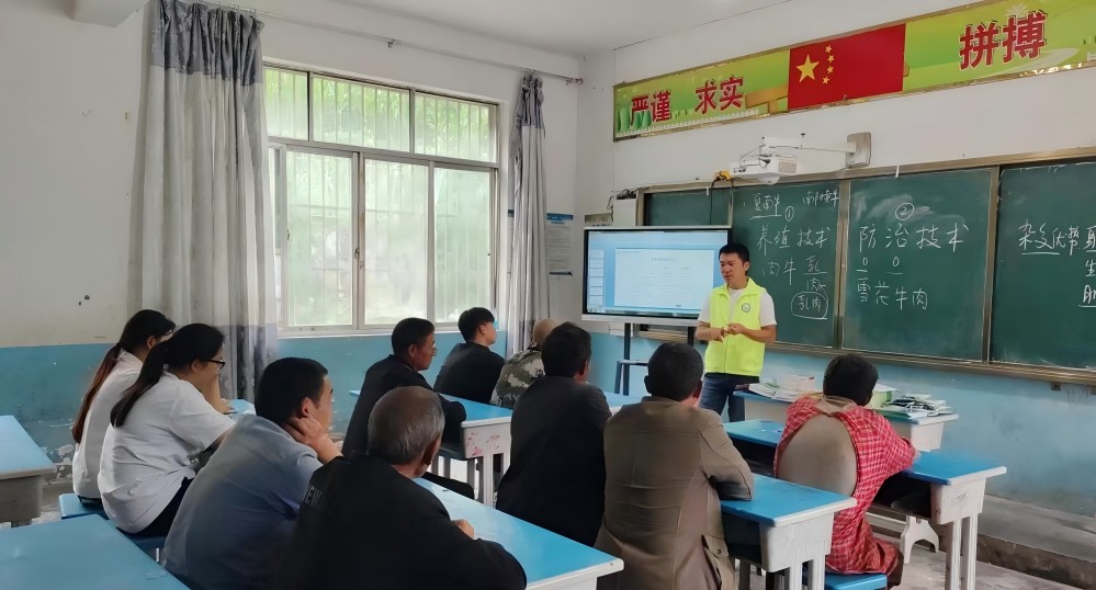 图为给养殖户们进行肉牛养殖技术讲解 龙飘 供图除了知识的传授,促进团成员还为养殖户们精心准备了鸡、鸭、鹅、猪、牛等各种养殖技术手册和消毒粉等物资。养殖技术手册内容丰富,涵盖了从养殖基础知识到市场分析的全方位信息,为养殖户们提供了随时可查阅的实用指南。消毒粉等物资则为养殖环境的清洁和疫病预防提供了直接的保障。