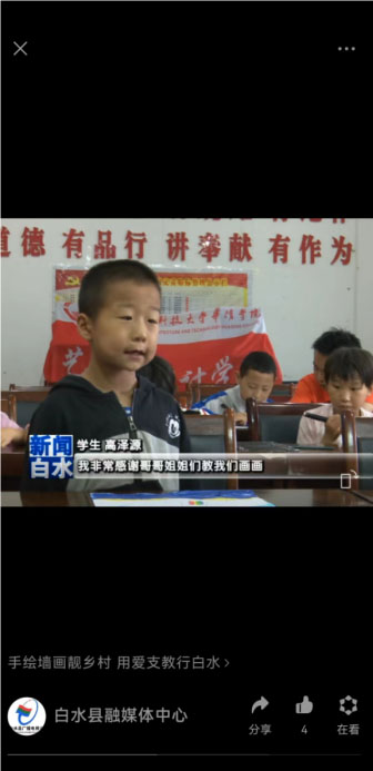 同时,媒体对雷牙村参与美术课程的孩子也进行了专访,高泽源小朋友兴奋地说道:“我很喜欢哥哥姐姐教我们画画,希望他们明年还来”。