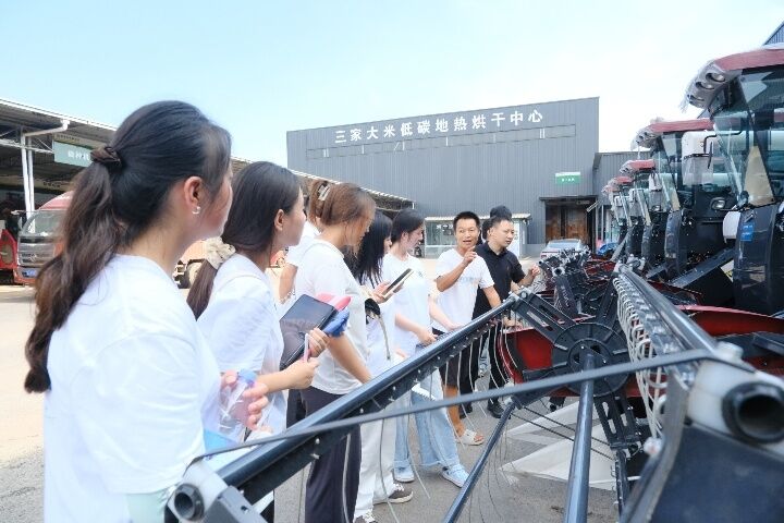 在园区的粮油仓储加工区,实践队成员参观了现代化的大米加工生产流水线,以及先进的粮油仓储设施。无人机喷洒农药、机器翻耕稻田,现代化农业机械装备的投入,不仅大幅提升了农业生产效率,也彰显了科技在现代农业发展中的核心地位。