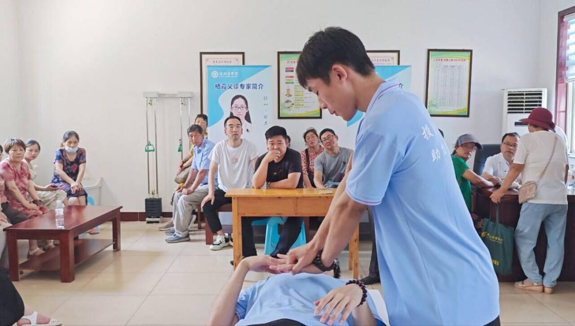 实践团队的专家们为当地居民们提供免费的中西医诊疗服务,设立了一对一咨询台,为居民解答健康问题。西医方面,对常见疾病进行诊断,开具处方并提供用药指导;中医方面,进行中医的体质辨识和脉象诊断,并提供针灸、推拿、艾灸等传统中医疗法。同时,实践队员为居民提供测量血压、血糖等基本生理指标的服务,并发放疾病预防手册、中医保健知识传单等。除此之外,实践队员还为居民讲解了如何实施心肺复苏术、海姆利克急救法、压迫性止血等日常急救方法,深入介绍了心肺复苏术的步骤和注意事项;针对呼吸道阻塞,实践队员就如何处理窒息等呼吸道阻塞问题的方法,详细演示了如何实施后背叩击法和人工呼吸法等;针对于出血控制,实践队员深入介绍了如何正确处理出血问题,包括使用止血带、施行压迫止血等方法,拓展了日常急救知识。通过此次“医路先锋”实践团队的中西医义诊活动,我们不仅为农村居民带去了切实的医疗服务,更在他们心中种下了健康与希望的种子。