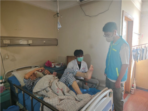 在本次活动中还有理疗师为志愿者开展了理疗的的现场演示,志愿者们认真倾听医生的讲解并且同患者沟通降低他们的心理负担,从而达到了很好的学习效果。