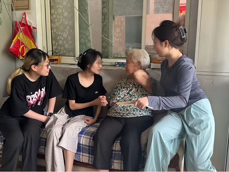 老人高兴地讲述她年轻时的生活,成员们静静地坐在老人的身边,倾听着她们老一辈上一代的故事,实践团成员也与老人分享自己的校园生活。此次活动让成员们真正的感受到了老人对于陪伴的渴望。