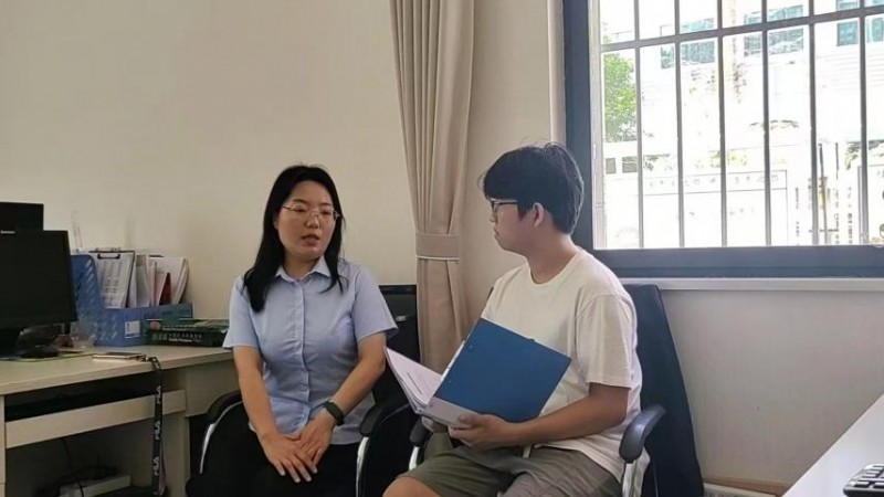 图为与工作人员交谈了解中 杨凯茵供图