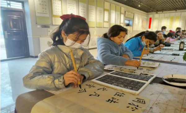 在此次社会实践中,我了解到阿克苏地区政协工委机关驻阿克苏市依干其镇良种尤喀克乔格塔勒村工作队发挥工作队员的书法特长和独特优势,在驻村点创办开展“筑牢中华民族共同体意识”书法公益培训活动,共有该村30多名学生参加书法培训。此培训除了学习书法外,还开设了国学课堂、古诗赏读、规范书写等课程。此活动通过让孩子们练习书法深入学习中华优秀传统文化,在青少年学生中形成良好的学习氛围。并有助于推广和规范使用国家通用语言文字,传承和弘扬中华优秀传统文化。激发了学生讲好普通话和学好汉字的积极性。
