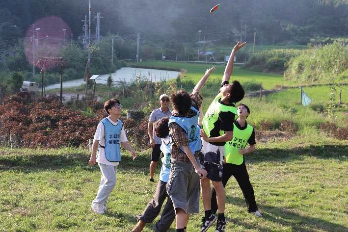 在切身参与的传统民俗活动中,实践团成员和当地村民一起体验壮族和瑶族的文化,夜晚篝火中共跳竹排舞,河畔在瀑布旁溯溪,在夕阳前“抢花球”,融入当地的欢乐氛围。