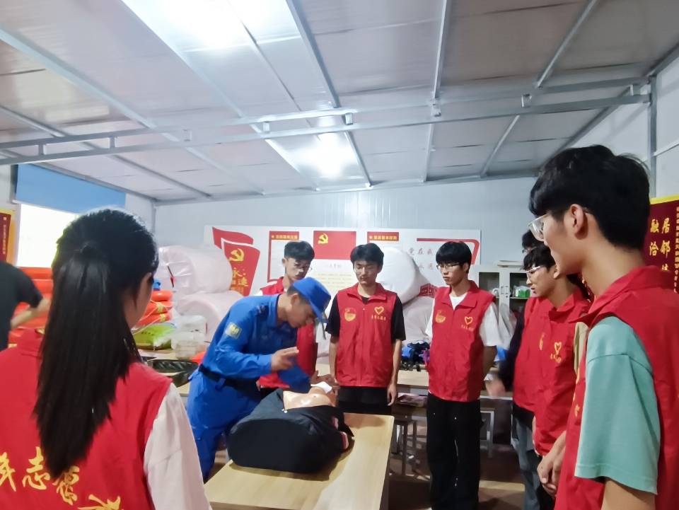 前期准备工作结束后,队长给我们讲述了有关急救方面的知识,包含心肺复苏和施救落水者的两个项目的注意事项。首先,来到邓州市安全教育屋向我们实践组成员介绍心肺复苏的施救方法,在演示过程中还让我们成员现场练习。