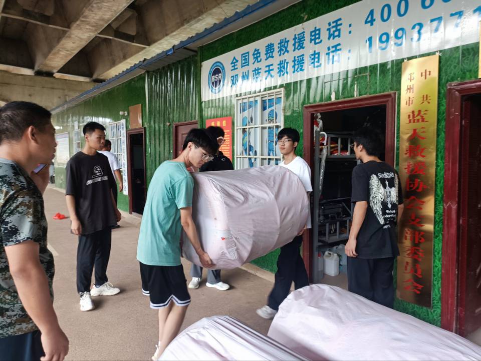 到达时正遇在洞庭湖决堤,邓州市蓝天救援队接收上级指令前往平江县展开救援慰问的出征仪式。在我们暑期实践组到达后,首先为救援队的救援仪器设备的准备与搬运出一份薄力。(下图是组员搬运器材的场景)