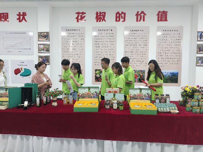 图为实践团队在花椒集散交易中心负责人的带领下了解花椒的价值(赵子渊供图)