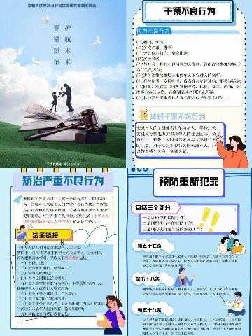 专门学校矫治从法从德;普法宣传教育善作善成。全面探索和优化我国罪错未成年人矫治教育体系,助力未成年人的健康成长和全面发展!
