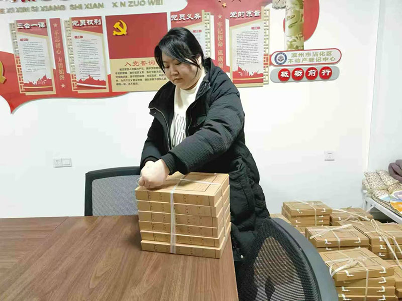 图为社会实践团成员丁晨曦服务房地产捆绑文件盒的工作
