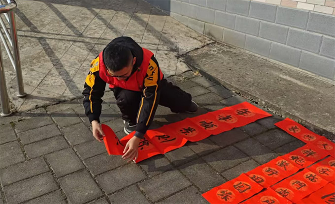 2025年1月22日星期三,安徽工业大学学生刁忠鑫参加“翰墨飘香,送福到家”志愿服务活动,春节的脚步日益临近,大街小巷都弥漫着浓浓的年味。椿树镇社区内更是一片热闹非凡的景象,一群充满活力的大学生志愿者们利用寒假时间,返乡投身社区志愿服务,为社区的老人和居民们带来了温暖与关怀,用实际行动书写着新时代青年的担当。