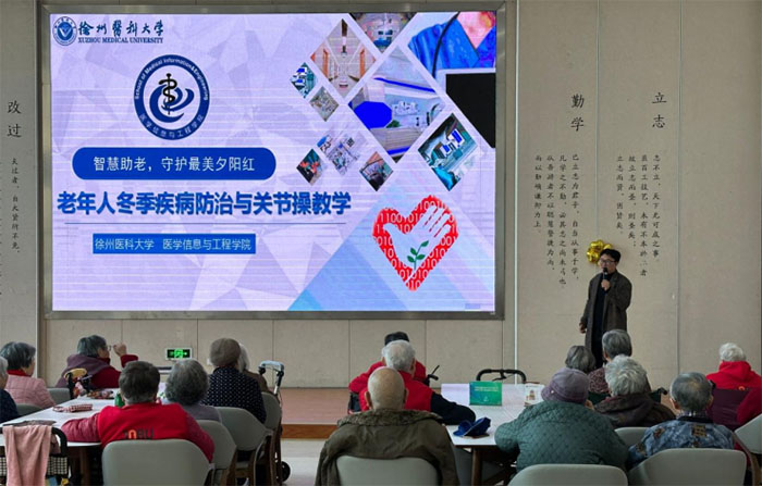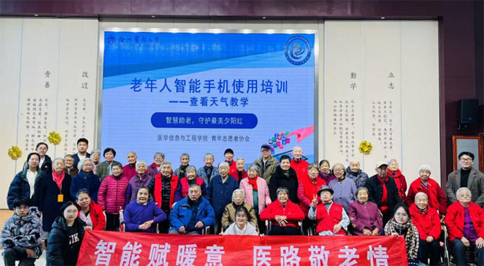 医学信息与工程学院青年志愿者协会在国家政策的引领与鼓舞下,积极响应国家关爱老年人战略部署,满怀热忱地走进康养中心。医信学子期望以所学专业知识为基石,运用医学信息学知识便利老人的生活,用关节操的律动唤醒老人身体活力,为老人们送去贴心关怀与实际帮助,让智能与温情在这个冬日相融,书写专属“医信”守护的敬老故事。