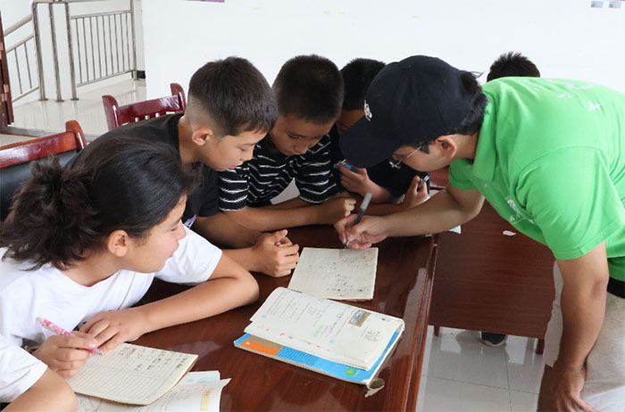课程结束后,各位“小老师”分年级开展课后辅导,在强化普通话学习的同时,充分兼顾学科知识,结合当地学校教学特点,耐心解答大家在课堂学习中遇到的各种问题。