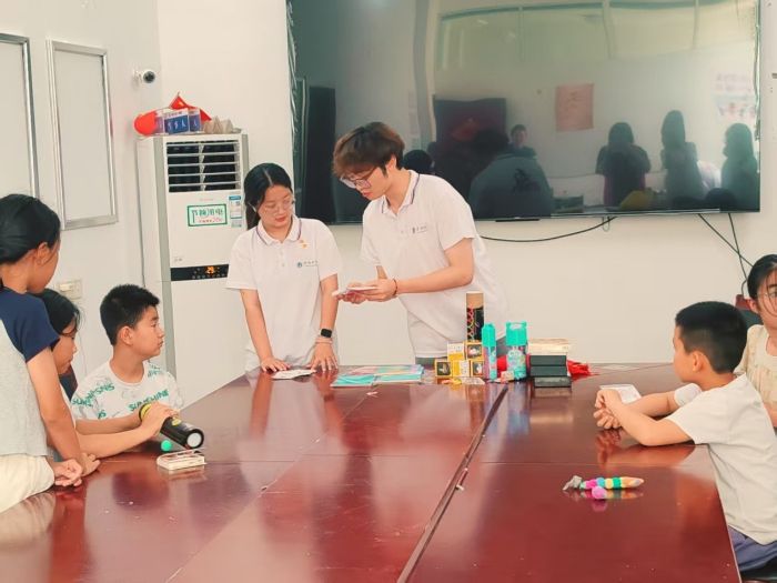 团队成员来到了当地村民委员会,架起“教育关爱服务团”的旗帜,吸引当地群众的注意,与当地政府人员开起座谈,深入了解教育帮扶内容,确定知识推进方向。工作人员纷纷表示文化宣讲在郎溪对外宣传,文化传承,教育提升方面发挥着重要作用。随后,团队成员将文化宣讲和走访调查相结合,走向大街小巷,深入调研当地的非遗了解情况。在充分的了解当地群众对非遗的了解渠道及存在的认识困难后,为孩子和当地群众制定了不同的策略。