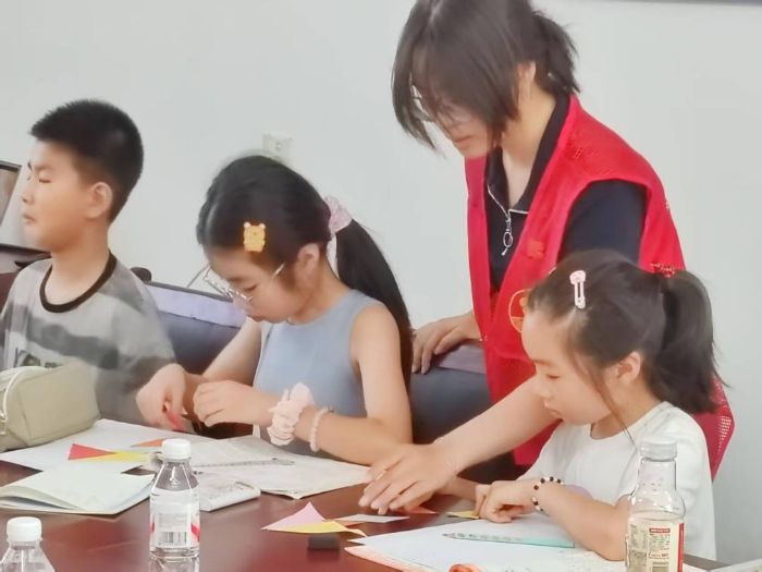 在安全文化知识宣讲环节。实践成员为孩子们发放了图文并茂的漫画、简洁易懂的顺口溜资料,将交通、消防等安全要点转化为趣味知识;同时,实践成员耐心指导孩子们阅读,鼓励他们将所学知识分享给家人,通过“小手拉大手”的方式,让安全意识从课堂延伸到家庭与社会,真正实现“教育一个孩子,带动一个家庭,影响整个社区”的辐射效应。