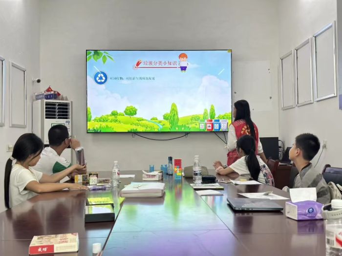 演讲“原来电池乱扔会让土地生病!”观看短片后,儿童们的惊叹声,印证了思政教育的“具象化传递”成效。在分类知识讲解环节,宣讲员以废纸、塑料瓶等日常物品为切入点,清晰区分四类垃圾标准,并用知识问答、模拟投放游戏强化认知——这些环节里,大学生既是“知识传递者”,更是“思政理念践行者”:为让讲解更贴近儿童,他们反复打磨案例,把“理论联系实际”的思政要求,转化为让儿童“听得懂、愿意学”的互动设计,实现了思政小课堂从“理论灌输”到“实践启蒙”的延伸。
