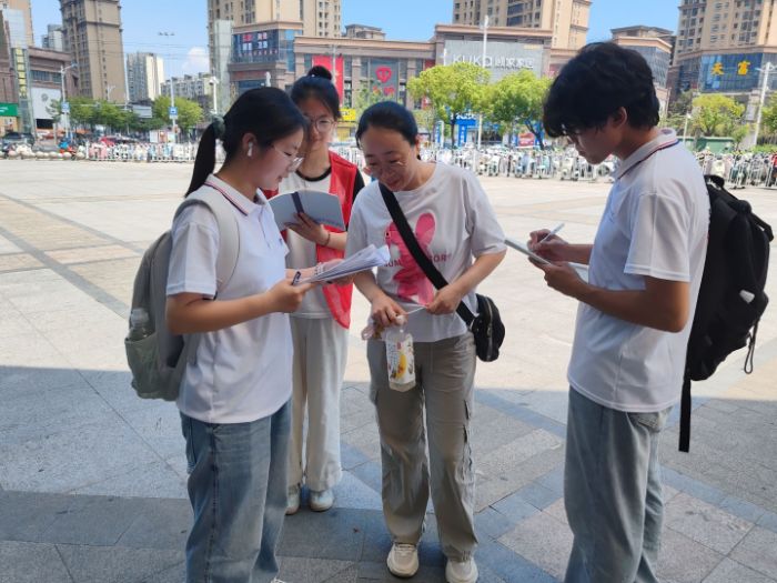 图为队员在国购商场外开展问卷调研。王蓉蓉 供图