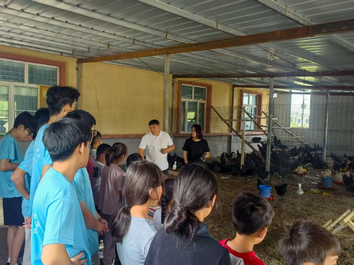 活动现场,养鸡场负责人围绕乌鸡养殖全流程授课。从乌鸡品种特性、鸡舍温湿度调控,到饲料科学配比、疫病防控,细致讲解让学生系统了解养殖要点。当得知乌鸡由村委会统筹养殖,成熟后发放村民助增收,现场惊叹连连,大家切实感受到乡村产业“惠民生、促共富”的温度。
