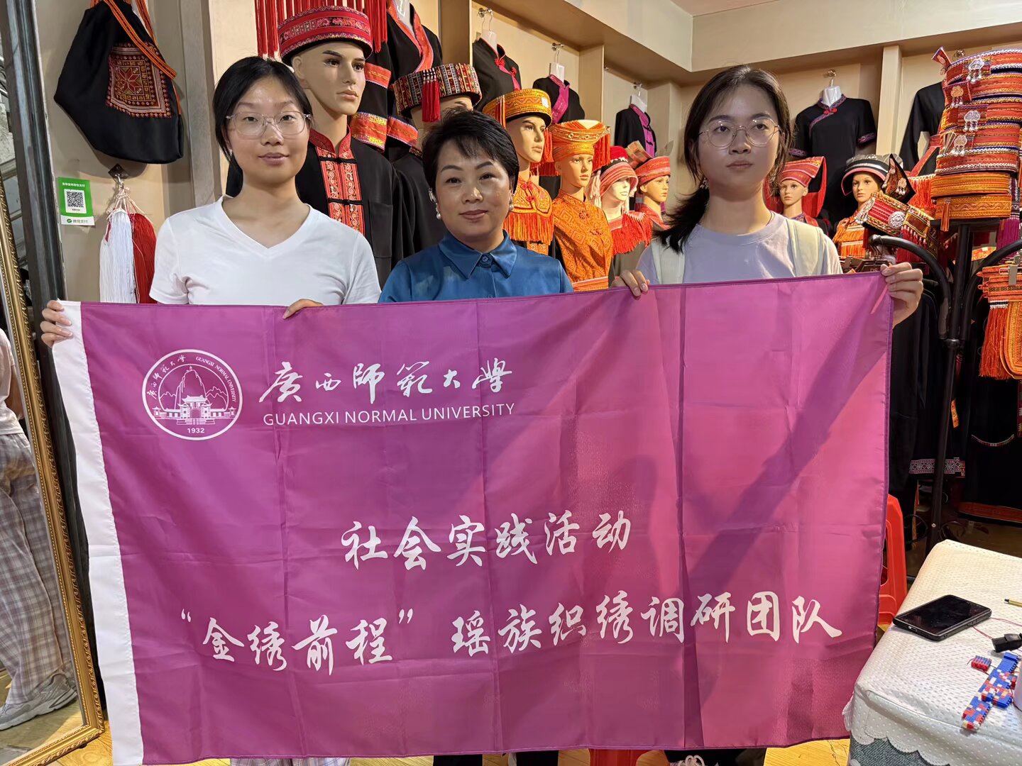 7月4日至6日,广西师范大学“金绣前程”团队深入广西来宾市金秀瑶族自治县,开展为期 3 天的非遗瑶绣调研活动。此次实践旨在挖掘瑶绣文化内涵与当代价值,探索“非遗 + 旅游”融合路径,为这门古老技艺的活态传承与创新发展寻找新方案。