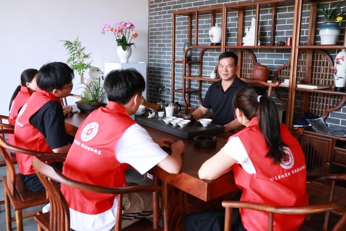在鸿鼎农场,实践队与2023年“福建省劳动模范”、漳平台商联谊会会长李志鸿先生座谈。李志鸿在访谈中回顾了自己扎根大陆二十余年,专注高山乌龙茶种植与加工的创业历程。如今,鸿鼎农场已成为两岸规模领先的现代化高山乌龙茶生产基地,其匠心打造的茶叶广受市场青睐。队员们深切感受到台商在大陆创业的热忱与坚守,更直观地领略到两岸农业产业深度融合孕育的蓬勃机遇与丰硕成果。