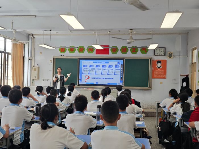 活动当天,实践团成员高梓烨首先介绍了人工智能的基本概念与发展现状。讲解过程中,她特别设置了互动提问环节,引导学生思考并回答人工智能的应用领域。随后,高梓烨结合实例,全面分析了人工智能技术可能带来的积极与消极影响,强调理解其双面性的重要性。