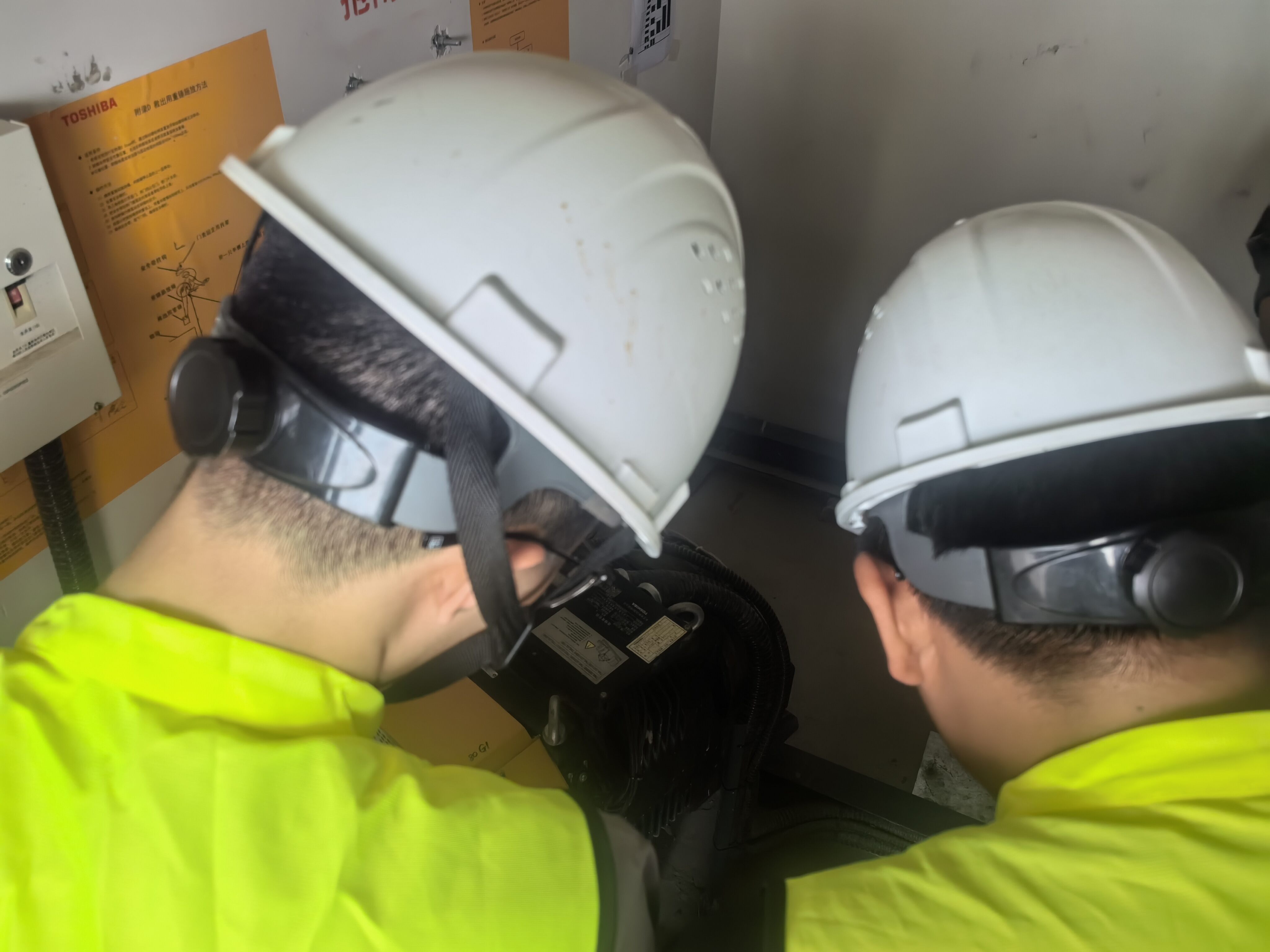 电机房作为电梯曳引系统及电梯整体运行的核心 “心脏房”,其状况关乎电梯运行安全。在完成曳引系统知识学习后,实践人员随即投入电机房检查工作。检查团队遵循规范流程,配合专业检察人员,首先查看电机房的环境状况,确认是否存在杂物堆积、温度过高、湿度超标等问题。电机运行产生的热量需要良好散热环境,若机房杂乱、散热不良,会影响电机及周边设备的使用寿命与性能。