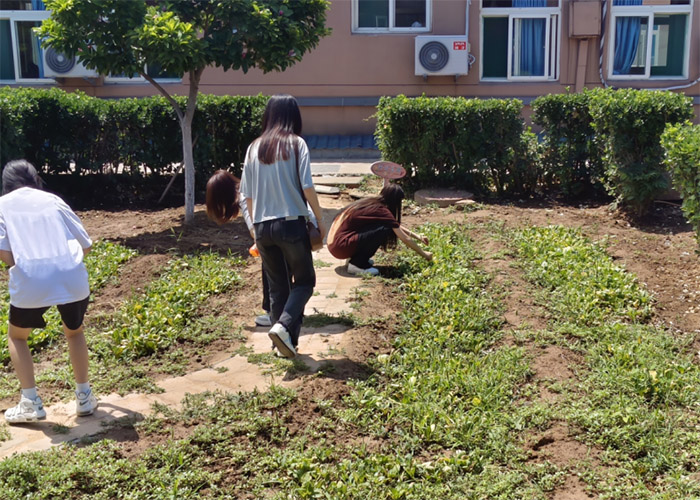 养老院后院的菜园里,成员们和护工一起摘菜。82岁的王爷爷搬来小马扎坐在畦埂边,指点大家辨认成熟的茄子。“得选这种紫得发亮的,蒂子发绿的还得再长几天。”他边说边弯腰示范,成员们跟着穿梭在菜畦间,摘下的茄子、辣椒很快装满了竹篮,沾着泥土的裤脚透着烟火气。