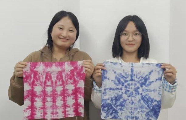 活动尾声,同学们展示了自己的扎染成品,粉紫、靛蓝等色彩交织的布料,既承载着传统工艺的韵味,也凝聚着大家的劳动心血。不少同学表示,这次体验不仅学会了扎染技能,也体会到了传统技艺的匠心,更在动手过程中感受到了劳动的乐趣。