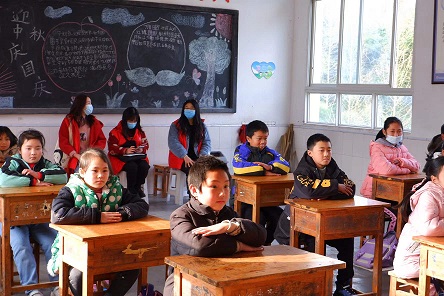 (油桥小学四年级教室 队员们在教室听课)