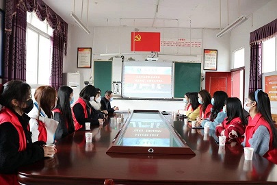 (油桥小学会议室 校长、老师及实践队在开会)