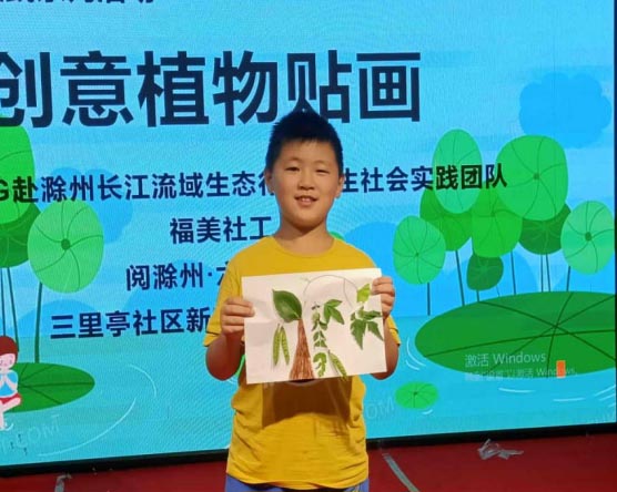7.8日,是安徽师范大学生科院赴滁州G长江流域生态行社会实践团队在滁州实践的最后一天,我们来到了三里亭社区,与小朋友们一起进行植物拼贴画的制作。