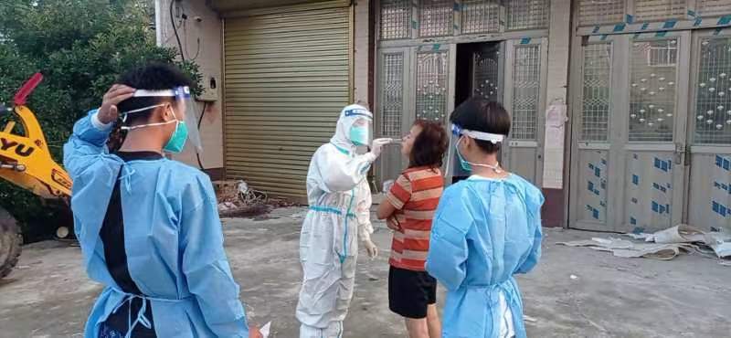 核酸检测是防疫工作中不可缺少的重要环节,团队队员也很荣幸能参与到瓦四村的核酸检测工作当中去。有着亲身经历的实践队员说:在疫情的严重时期,瓦四村每天上午抗原检测,下午核酸检测。下午烈日当头,实践队员在烈日下维持秩序,帮助核酸检测工作的顺利进行。核酸检测的采样人员一般为专业医生,志愿者们主要负责信息采集和维持秩序。村里核酸检测要求排队人员间隔两米,相比城市居民,村民们还是比较随意的,因此维持秩序的工作是必须的。村民做完即可返回家中,但志愿者们要站在烈日下一下午,在工作过程中没有任何一位志愿者中途放弃。核酸检测也是人群聚集的场合,多一份秩序,就能将风险降到最低。实践队员在工作中感到头晕、腿麻,但仍选择坚持下去,这是对防疫工作的认真和负责。