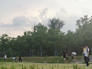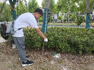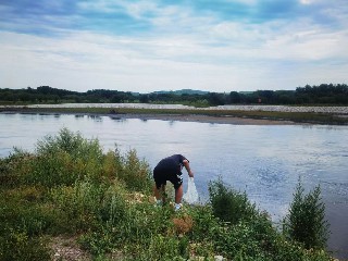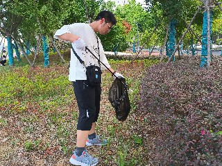 我返回我的家乡河南焦作,和家人们一起来到大沙河进行了净滩活动。大沙河是海河流域卫河的一条支流,河道全长115.5公里,焦作境内长74公里,一直属焦作泄洪河道。2018年3月以来,焦作市陆续开展了大沙河山水林田湖草综合治理,至今取得了一定成效。活动伊始,我们在大沙河旁的草坪帮助工作人员除草。然后来到大沙河旁的绿地,捡拾塑料瓶等垃圾。在完成垃圾捡拾工作后,我们向工作人员借来了防护服和酒精消杀枪,在大沙河的黄沙滩和白沙滩分别进行了消杀工作,为驻足的行人提供更加干净安全的休息环境。