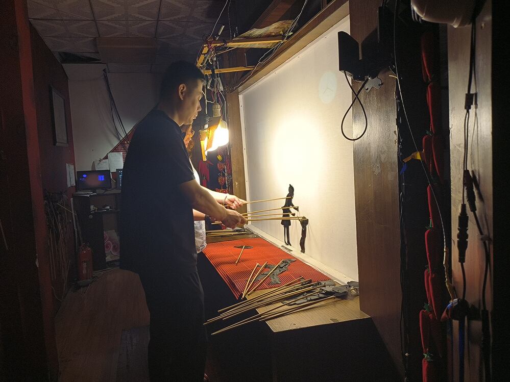 首先,映入眼帘的是琳琅满目的皮影作品。在表演人员的陪同下,实践队成员详细了解了泰山皮影的起源和发展。泰山皮影表演方式独特,一台戏最多需要两到三个人表演,甚至可以一个人演出一台戏。表演者同时脑子想着词,口中唱着曲,手里舞着人,脚下踩着锤,一人身兼数职完成整一台戏的演出。泰山皮影第六代传承人范正安先生,如今已年逾古稀,仍苦学英语,将皮影戏带向世界,促进跨文化交流。